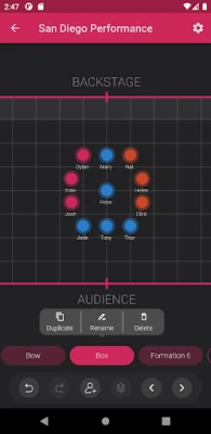 Easy, fast and stylish ArrangeUs has everything to help choreographers to move their formations from paper to the App. With this App you can: - watch animated transitions; - name your dancers and change their colors; - leave comments for each position; - customize stage with various settings (including its size); - undo any of your actions;