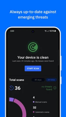 Malware Scanner automatically scans all mobile apps and files for viruses, malware, and other threats to protect your Android device.