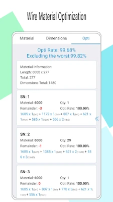 1. Linear Cutting Optimization: Cutting optimization is designed for optimizing the cutting of various types of linear materials. including aluminum cutting optimization, steel cutting optimization, wood cutting optimization, and any other cutting optimization. It supports material nesting, 45° angle cutting optimization, and other advanced characteristics.