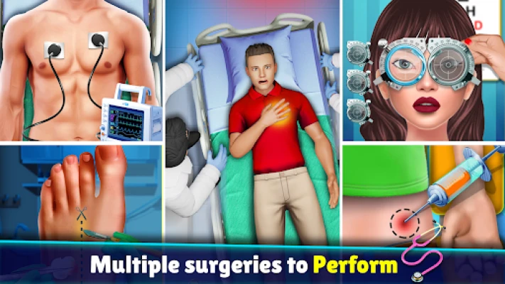 Experience doctor hospital games & you may find many medical departments in doctor hospital games & to treat patients for a variety of illnesses and injuries in care clinic doctor games simulator. In this Doctor Simulator Games, throughout hospital games, you'll investigate the surgical technique and contemporary instruments utilised in foot surgery & other treatments like Dental Care, Heart Surgery & become the Doctor Surgeon Simulator of Doctor Hospital Games 2025. In professional surgery games the injured patient arrived at the hospital for treatment staff members assessed the patient's health and provided gentle care in this doctor hospital games asmr. There are various divisions, including the foot clinic, ENT, dental, and general in this doctor hospital Games. In surgery hospital Games treat the patient at your pace in the offline eye surgery games because City Central Hospital is a busy location and every patient deserves your medical care in Hospital Simulator Game. Your duties as the accountable physician at the city hospital include doing procedures including drawing blood, examining the patients and give treatments in this Hospital Doctor Surgery Simulator.