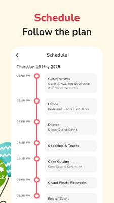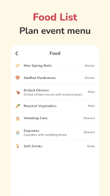 With Event Planner, you can plan your event schedule, manage your tasks, create a detailed food menu, control your event budget, and organize your guest list effortlessly — all in one place.