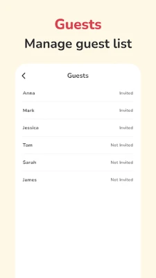 🧑🤝🧑 Guest List - Create a complete guest list for your birthday party and other important events. Import guests directly from your phone contacts. You can also manage the invitation status for each guest to keep track of RSVPs and confirmations — ideal for wedding planning and managing invitations.