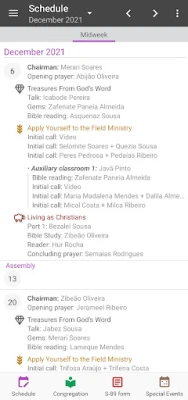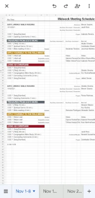 - students assignments - public talks - weekend and midweek assignments - Field service meetings - Public witnessing