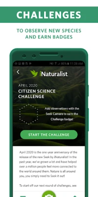 Drawing from millions of wildlife observations on iNaturalist, Seek shows you lists of commonly recorded insects, birds, plants, amphibians, and more in your area. Scan the environment with the Seek Camera to identify organisms using the tree of life. Add different species to your observations and learn all about them in the process! The more observations you make, the more badges you’ll earn!